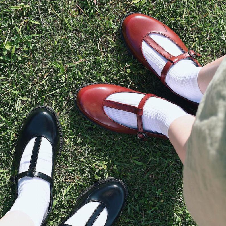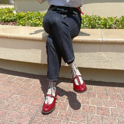 普通のストラップシューズは可愛らしい雰囲気になりますが、Tストラップだと上品で大人っぽい雰囲気になるところがお気に入りです。